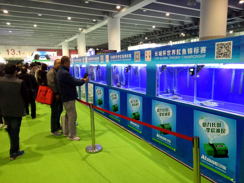 長(cháng)城杯世界魟魚(yú)錦標賽 / 2016.3.18至20 / 廣州琶洲 由“長(cháng)城展覽”聯(lián)手“中國漁業(yè)協(xié)會(huì )”共同主辦,并由50多家行業(yè)協(xié)會(huì )與俱樂(lè )部共同參與的“長(cháng)城杯-世界觀(guān)賞魚(yú)錦標賽”于2016年11月10-13日,在“中國國際寵物水族用品展”上開(kāi)賽。 這是中國乃至全球,首次10場(chǎng)賽事同期上演的水族盛事。從現場(chǎng)參賽的魚(yú)品種、品質(zhì)、數量,到技術(shù)團隊,器材供應,評委陣容,賽事獎金都為水族活體賽事樹(shù)立了一個(gè)新標桿。 其中,參賽魟魚(yú)達到80缸,黑白魟、金點(diǎn)魟、珍珠魟,甚至罕見(jiàn)的白子都齊集會(huì )場(chǎng),讓廣大魚(yú)友大飽眼福。同時(shí)也是一次中國漁場(chǎng)、經(jīng)銷(xiāo)商、魚(yú)友、器材商、專(zhuān)家的大聚會(huì )。